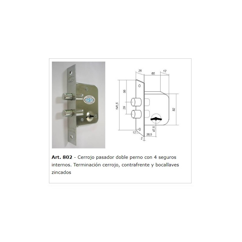CERROJO DOBLE PERNO 25 X 140